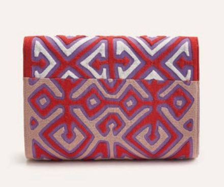 Quilted Zipped Patchwork Pouch - Bordeaux Colorblock