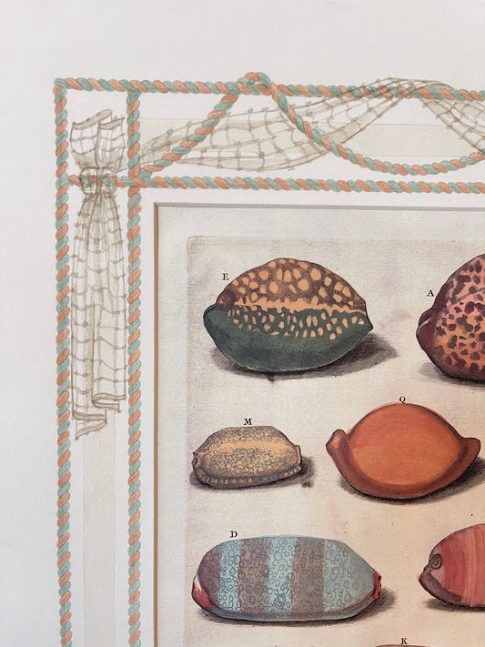 Custom Framed Antique Print ft. Shells with Hand-painted Matte