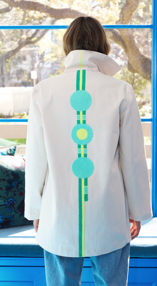 Our jackets are made from pre-shrunk, 100% cotton duck canvas material. Because each garment is handmade, natural idiosyncrasies and imperfections make each piece unique and one-of-a-kind. Threads are organically dyed to achieve vibrant colors. To preserve the integrity of the color and delicate stitching, all garments are dry clean only. Each jacket comes with a complimentary, neon orange enamel pin.