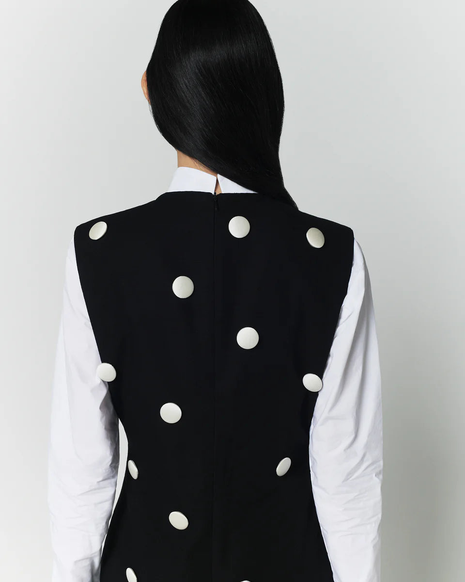 Black cotton dress with contrasting dots