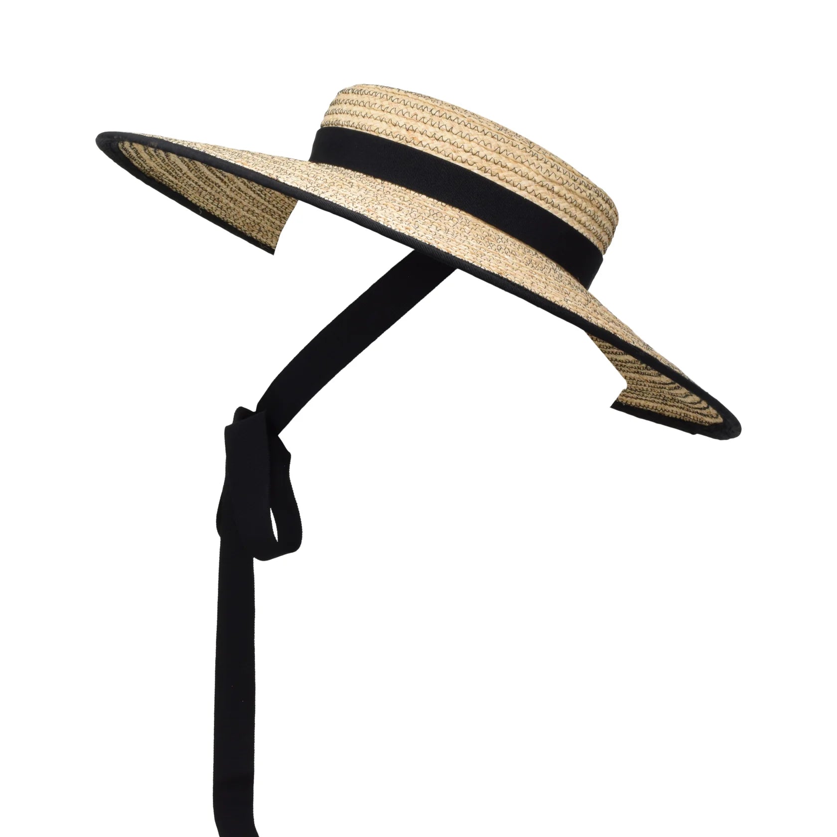 Expertly crafted, the statement making Claiborne boater hat is made from raffia straw with a visible zig zag stitch detail. The grosgrain neck ties add a touch of polish while the slim crown and wide brim provide a timeless and sleek silhouette. When not worn on the head, we love to see the Claiborne worn tied at the neck and draped down the back.