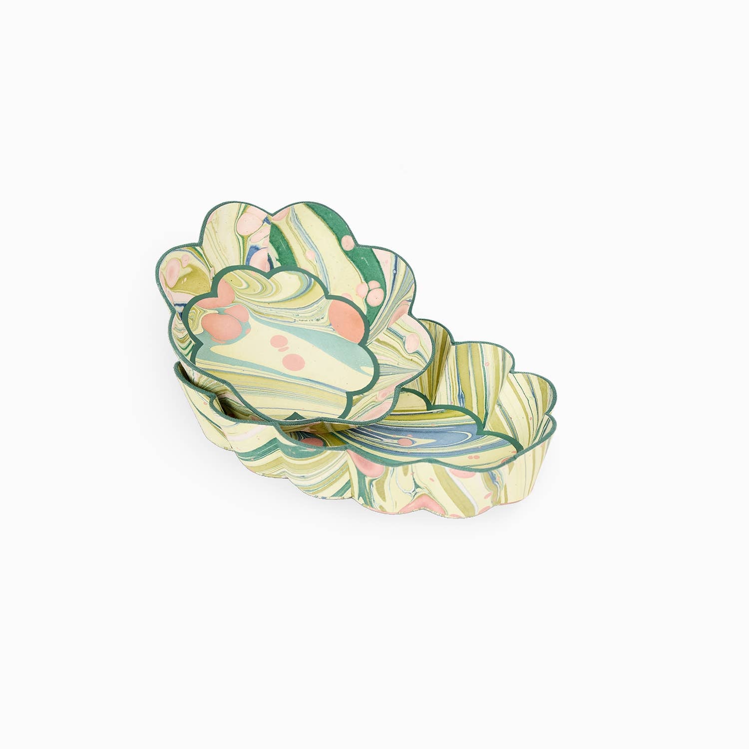 Handcrafted by master artisans in Jaipur, this Recycled Cotton Handmade Paper Tray features a hand-marbled paper design, making each piece uniquely beautiful.