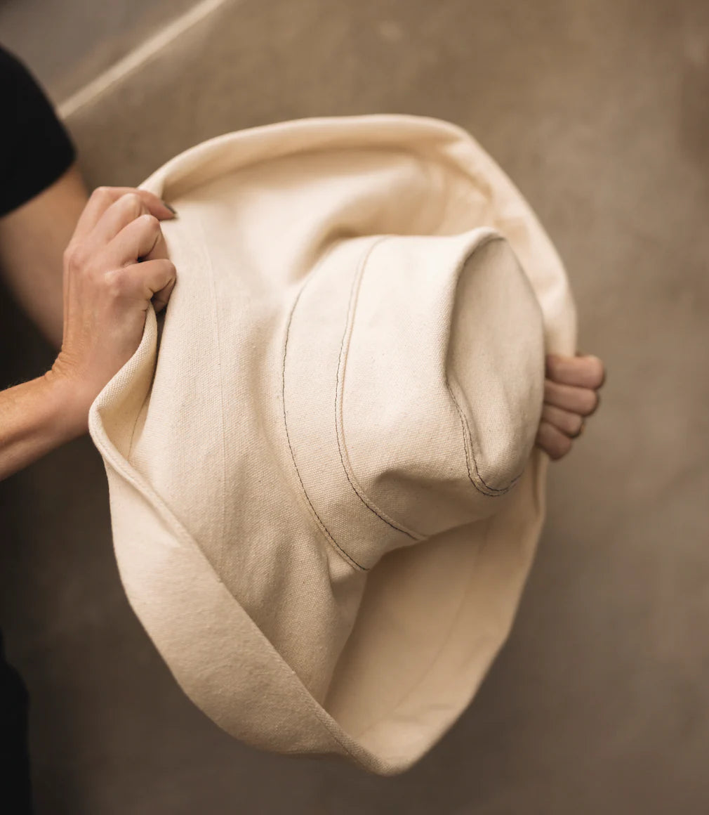 The soft heavyweight 100% cotton canvas is sewn into a unique upturned shape, blocking the bright light in style. This polished yet relaxed silhouette is fully packable and offers heavy hitting sun protection. The Leigh continues to be a best selling essential that travels well to any warm weather destination.