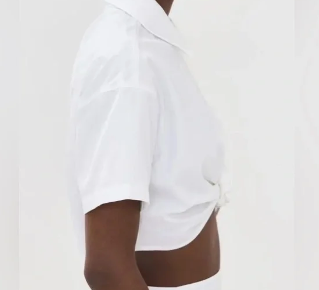 The Myriam Blouse in offers a fresh take on cropped elegance. Featuring a front knot accent and delicate short sleeves, this blouse balances structure and softness.