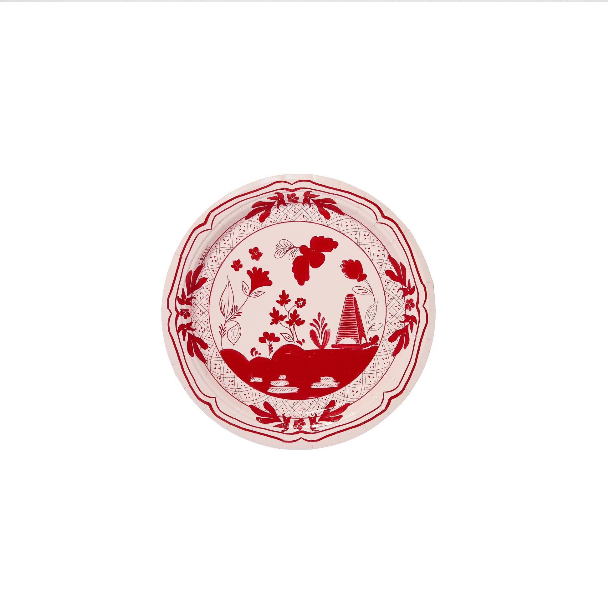 These miniature 6 inch diameter biodegradable china plates come in a new Ginori inspired pattern. These are perfect for serving cupcakes or petit fours, maybe some crudite, definitely cheese and crackers. These are available in 8 packs.