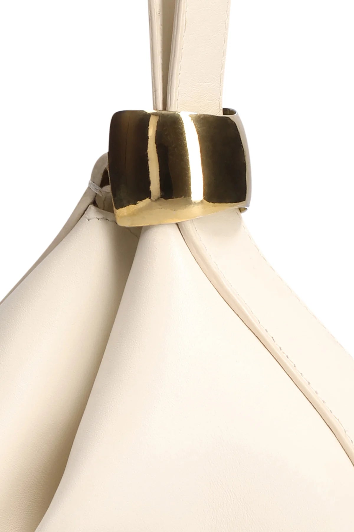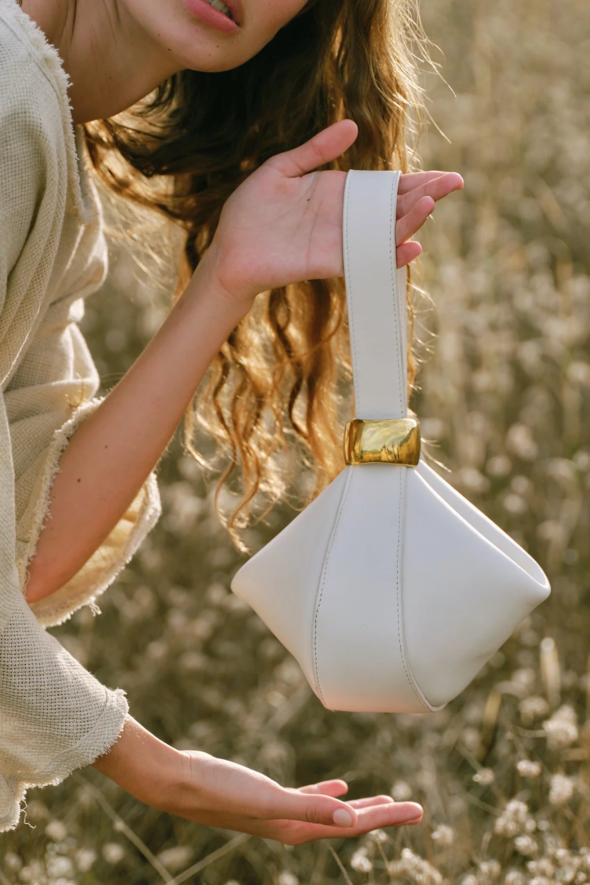 The Zambia, a small and soft Pouchette bag that defines contemporary elegance. The handle arch piece adds a distinctive flair, making it a must-have for those seeking avant-garde style. Crafted from luxurious leather, this accessory effortlessly blends sophistication with a fashion-forward edge.